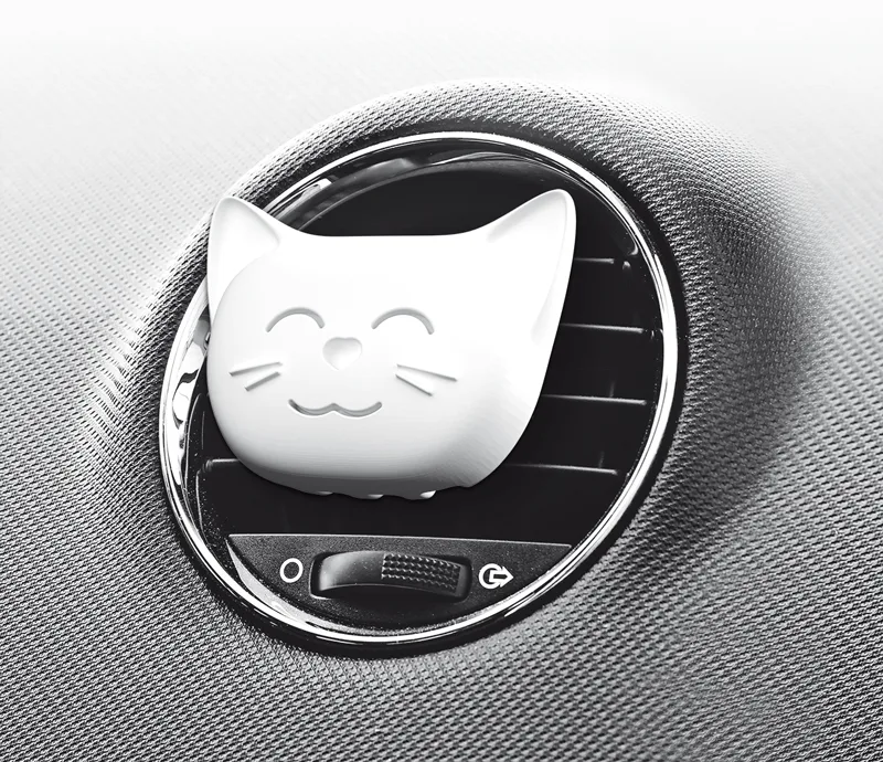 El Cosmic Cat es un aromatizador tipo clip diseñado para rejillas de ventilación, pero también se puede colgar en el espejo retrovisor, combinando funcionalidad y estilo. Con un diseño inspirado en tu mascota favorita, este aromatizador no solo perfuma, sino que también decora tu auto con originalidad.